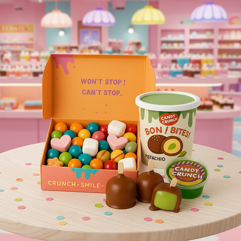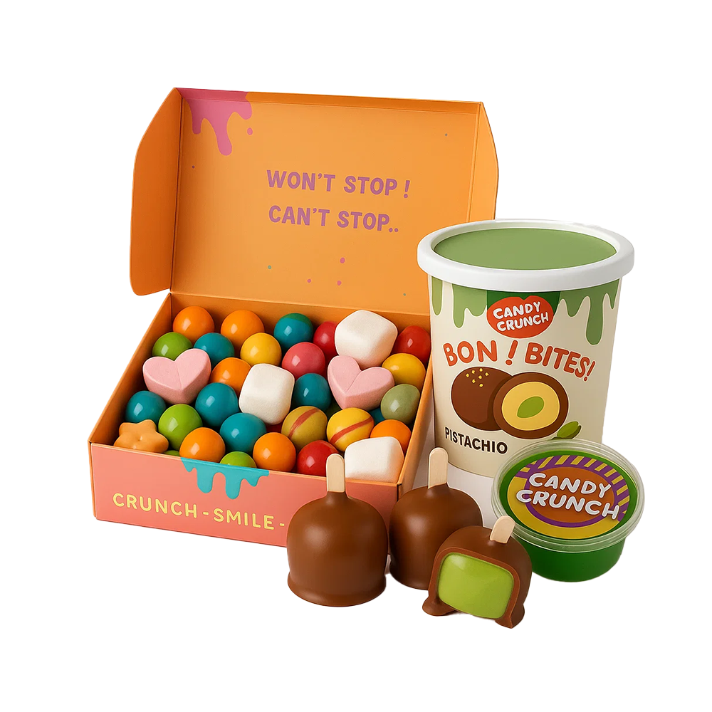 بوكس كاندي كرانش حجم متوسط مع صوص و ايس كريم بيستاشيو